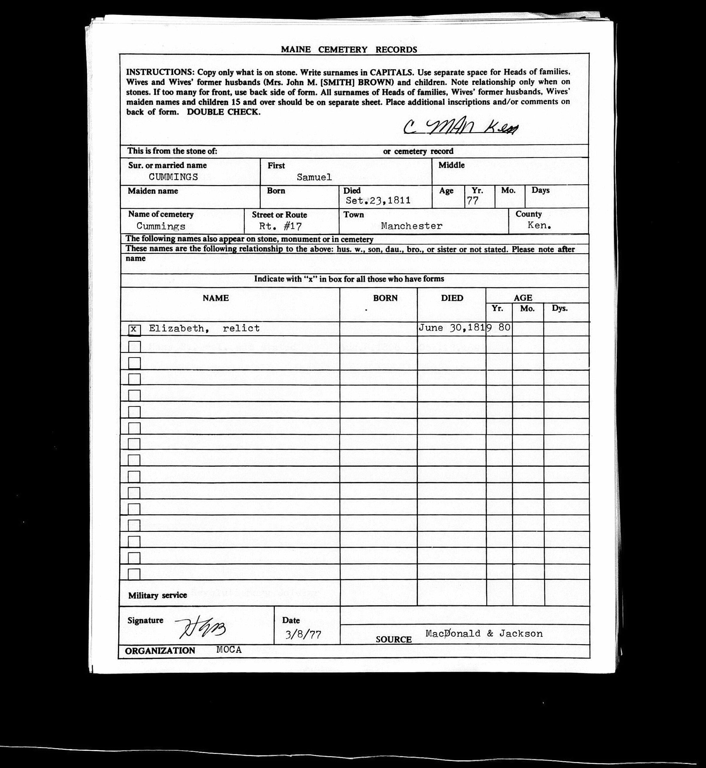 Died 1811, Manchester, ME.